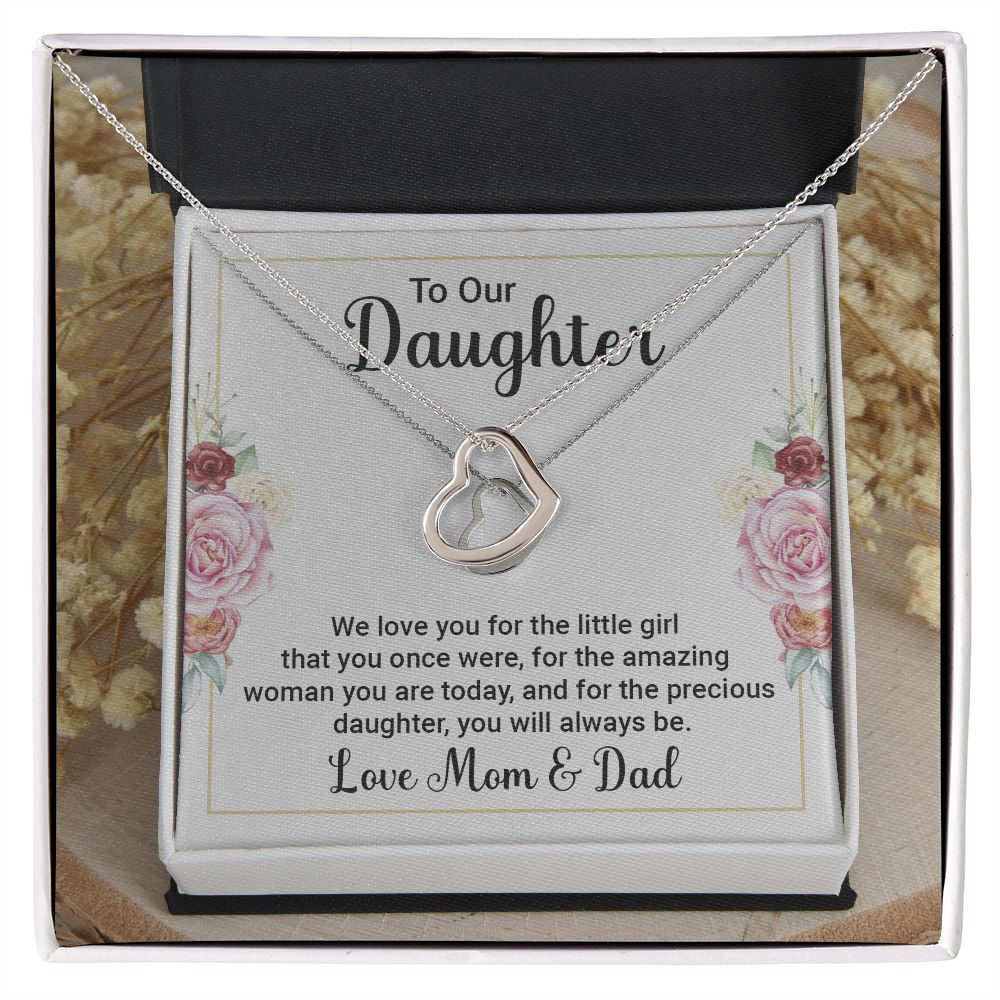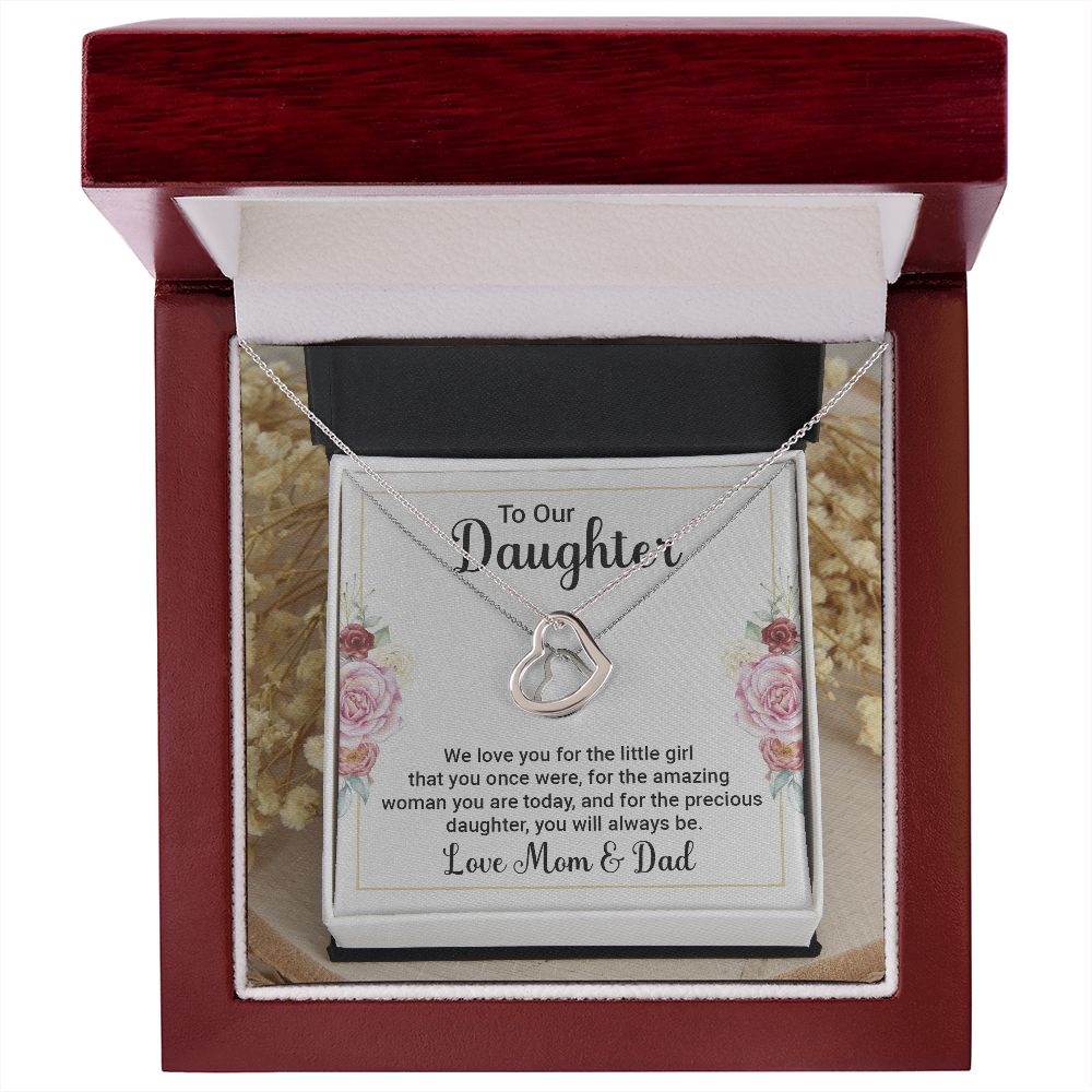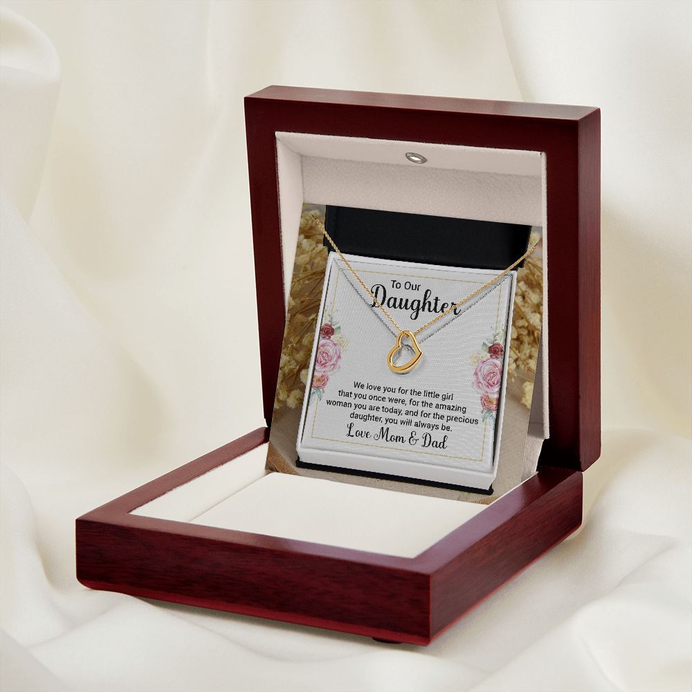 Imagine her delight when she sees this beautiful Delicate Heart Necklace, lovingly crafted in sterling silver and dipped in 14k white gold or 18k yellow gold for added luxury. This piece is pure elegance wrapped up in timeless simplicity. Trends may come and go, but this piece will last a lifetime with its classic subtle beauty.