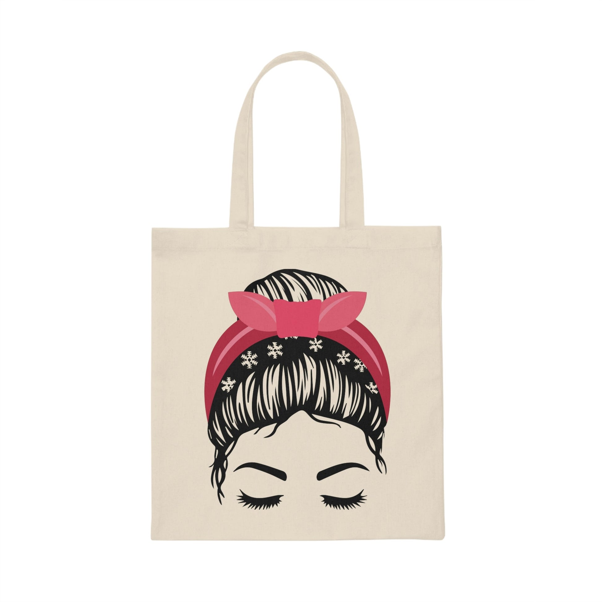 Glem Grammy Messy Bun Cute Canvas Tote. Measuring at 15.75"h x 15.25"w and with a handle length of 21.5”, these personalized tote bags are with 100% cotton sheeting. Add their reinforced handle stitching to the mix, and you got a reliable bag rich in both practicality and durability.