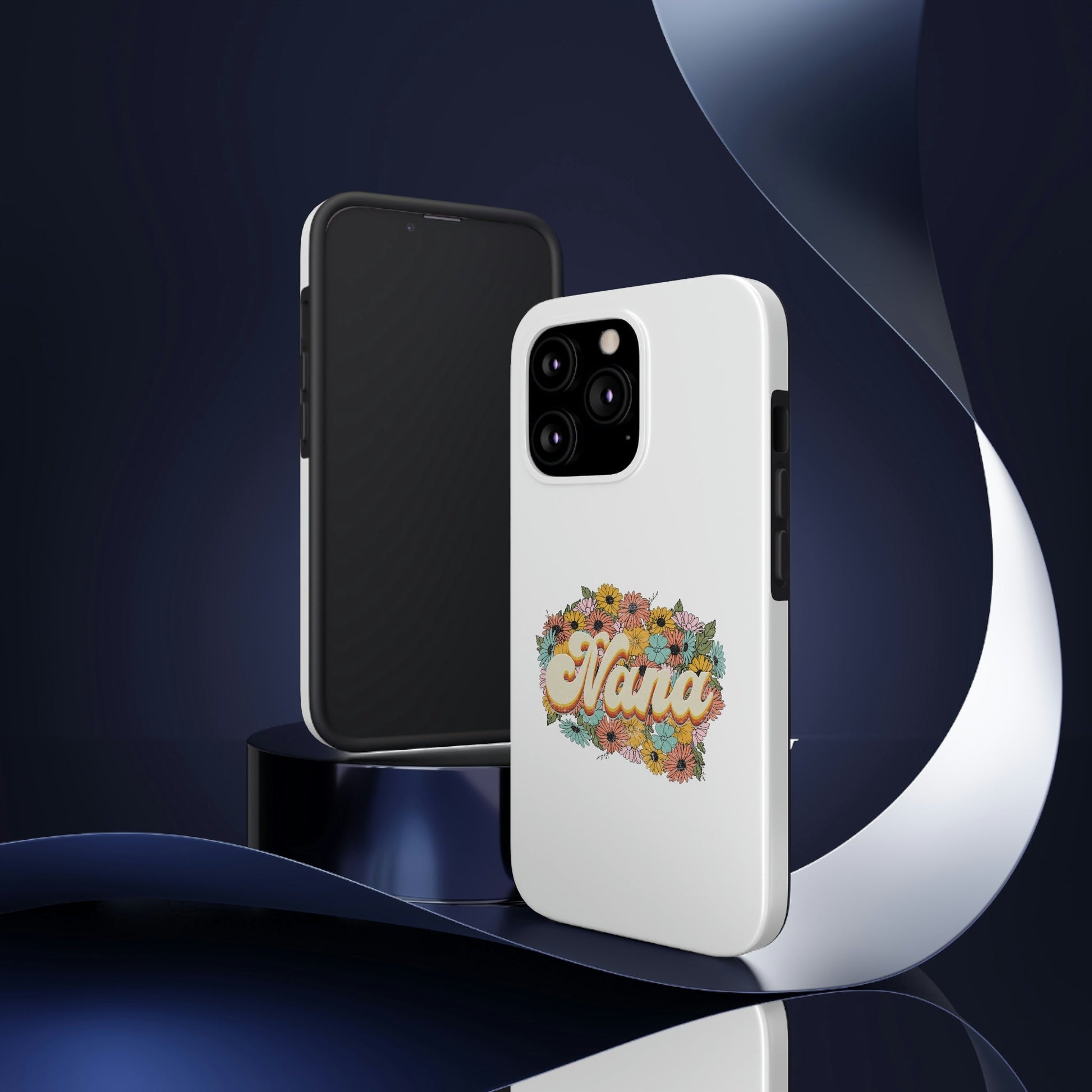 Retro Nana Flowered Tough Phone Cases, Case-Mate. Mother's Day, Mother's Day gift, Birthday gift, Nana gift. Protect your phone in custom style with this tough phone case. This lightweight phone case is impact resistant and comes with the perfect surface to print all your ideas in vivid detail as well as crisp color. Compatible with iPhone 12, 13, 14 & more – check our available sizes.