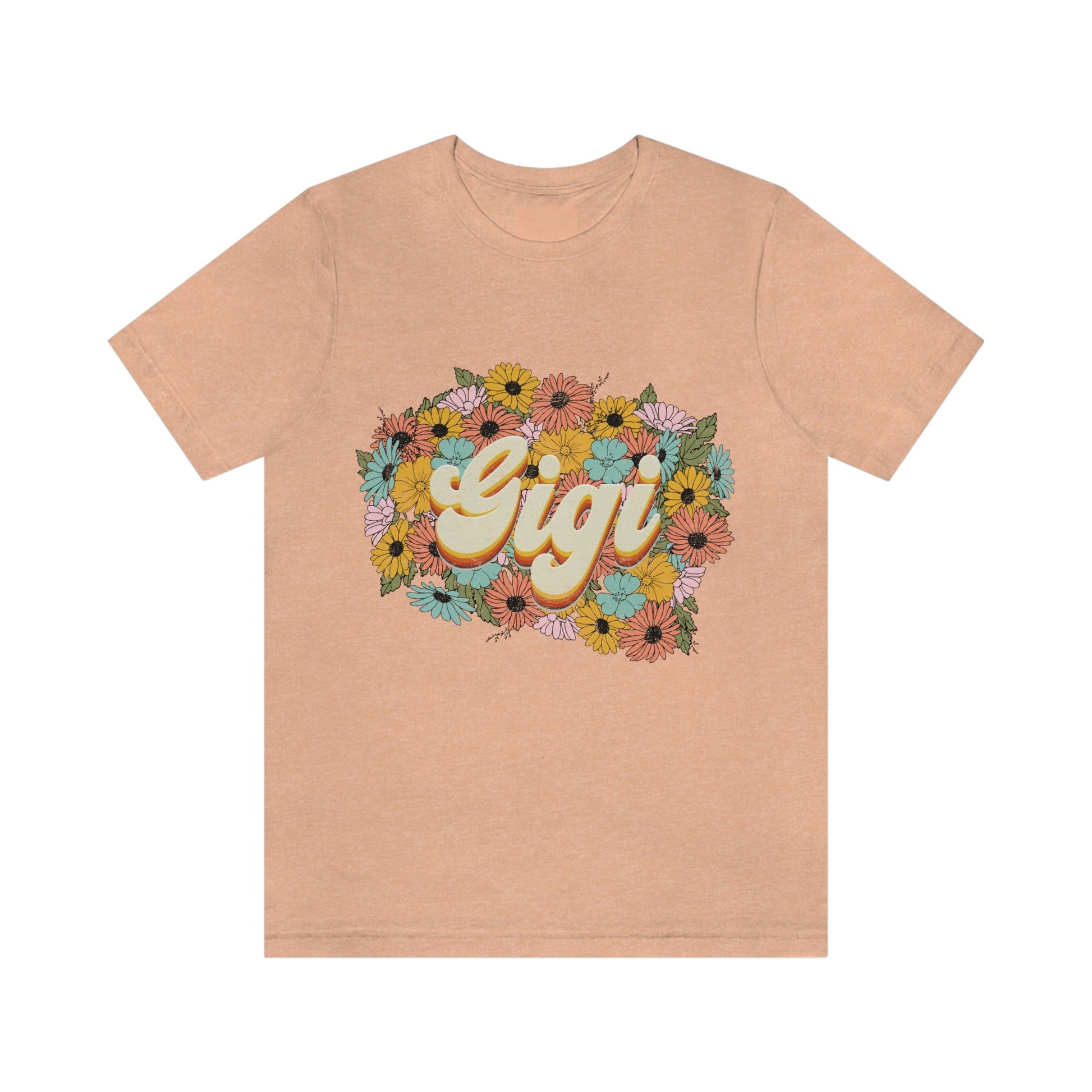 Vintage Gigi Jersey Sunflower Short Sleeve Tee, Gigi Shirt, Grandma Gift, Gigi Gifts, Gigi Birthday, Mother's Day Shirt, Mother's Day GiftThis classic unisex jersey short sleeve tee fits like a well-loved favorite. Soft cotton and quality print make users fall in love with it over and over again. These t-shirts have-ribbed knit collars to bolster shaping. The shoulders have taping for better fit over time. Dual side seams hold the garment's shape for longer. .: 100% Airlume combed and ringspun cotton (fiber content may vary for different colors) .: Light fabric (4.2 oz/yd² (142 g/m²)) .: Retail fit .: Tear away label .: Runs true to size