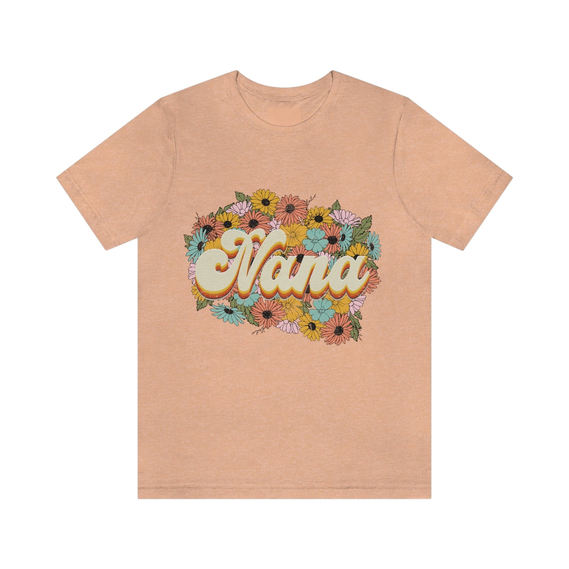 Vintage Nana Flowered Jersey Short Sleeve Tee. Mother's Day Gift, Nana Birthday gift, Nana gift, Grandma gift, Nana shirt. This classic unisex jersey short sleeve tee fits like a well-loved favorite. Soft cotton and quality print make users fall in love with it over and over again. These t-shirts have-ribbed knit collars to bolster shaping. The shoulders have taping for better fit over time. Dual side seams hold the garment's shape for longer. .: 100% Airlume combed and ringspun cotton (fiber content may vary for different colors) .: Light fabric (4.2 oz/yd² (142 g/m²)) .: Retail fit .: Tear away label .: Runs true to size